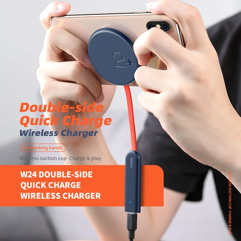 Limited Offer for ROCK Double-Side Wireless Charger Suction Cup Fast Wireless Charging Pad 15W Qi Charger for iPhone
